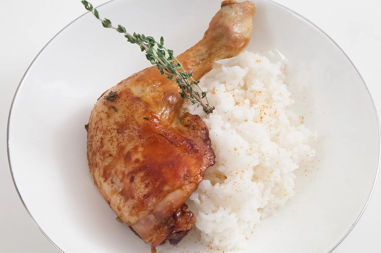ШАГ 3 Разогреть духовку до 180 градусов, отправить туда курицу на полчаса. Через полчаса окорочка покроются хрустящей карамельной корочкой, тогда достать их из духовки и подавать с картофельным салатом или рисом.