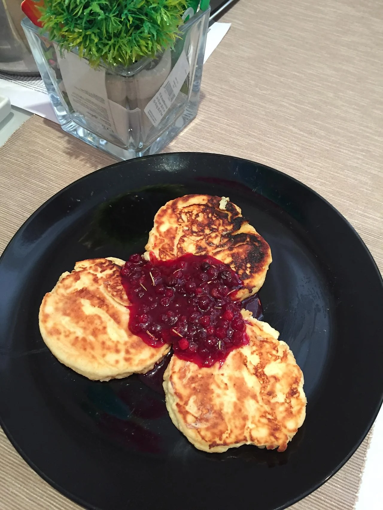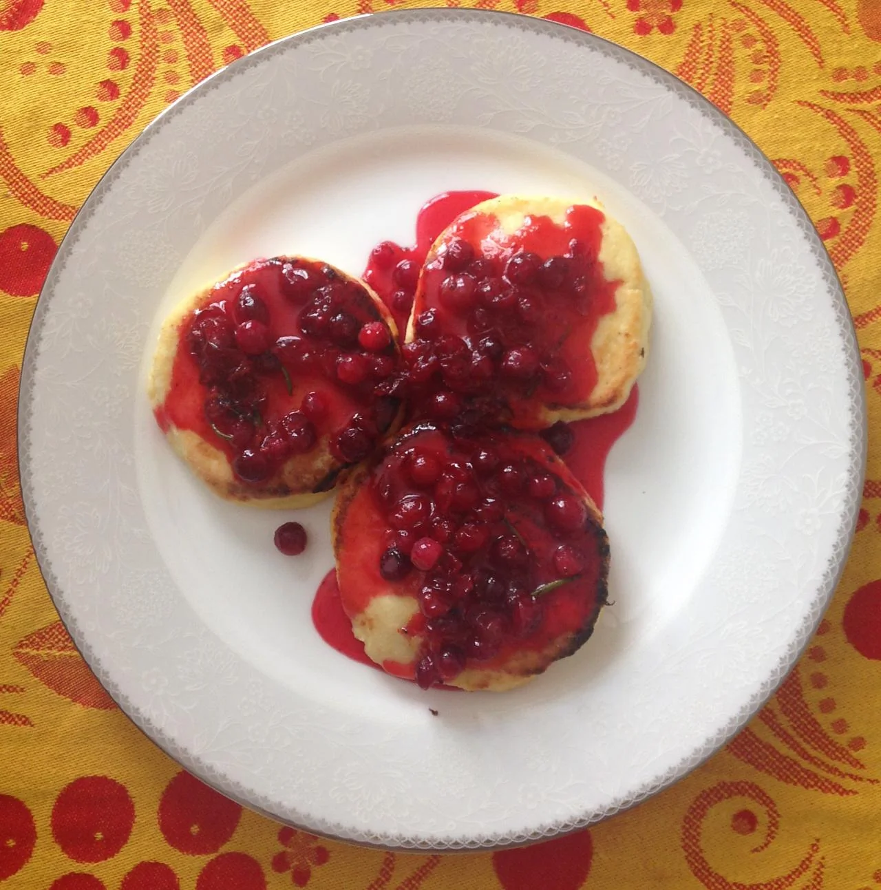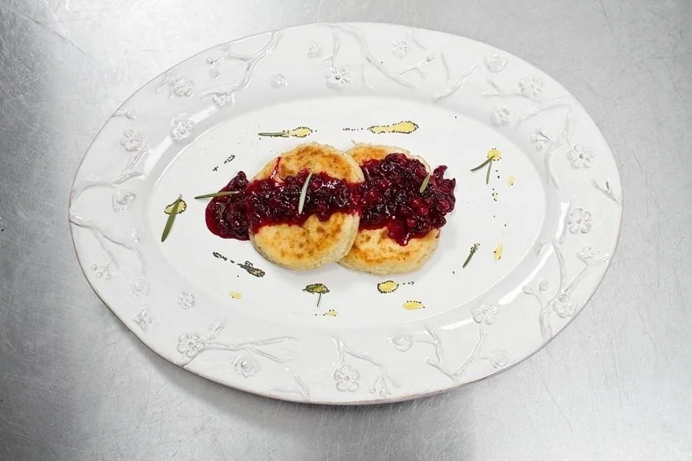 Сырники с бруснично-розмариновым вареньем