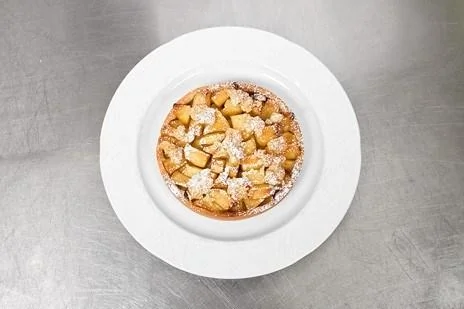 ШАГ 5 Заполнить коржи яблоками, равномерно выложить на них крамбл и отправить в духовку, разогретую до 180 градусов, на тридцать-сорок минут: тарталетки должны подрумяниться. Затем вынуть их из колец и дать остыть хотя бы полчаса, хотя они особенно хороши холодными. Перед подачей посыпать тарталетки сахарной пудрой.