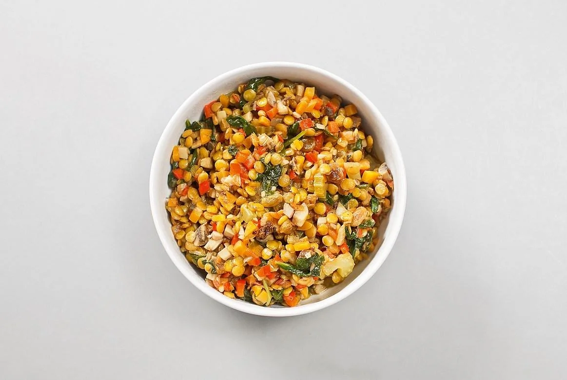 ШАГ 8 Тушить до тех пор, пока бульон полностью не впитается и чечевица с овощами не приобретет рассыпчатую консистенцию. Готовую чечевицу разложить по глубоким пиалам и сразу подавать.