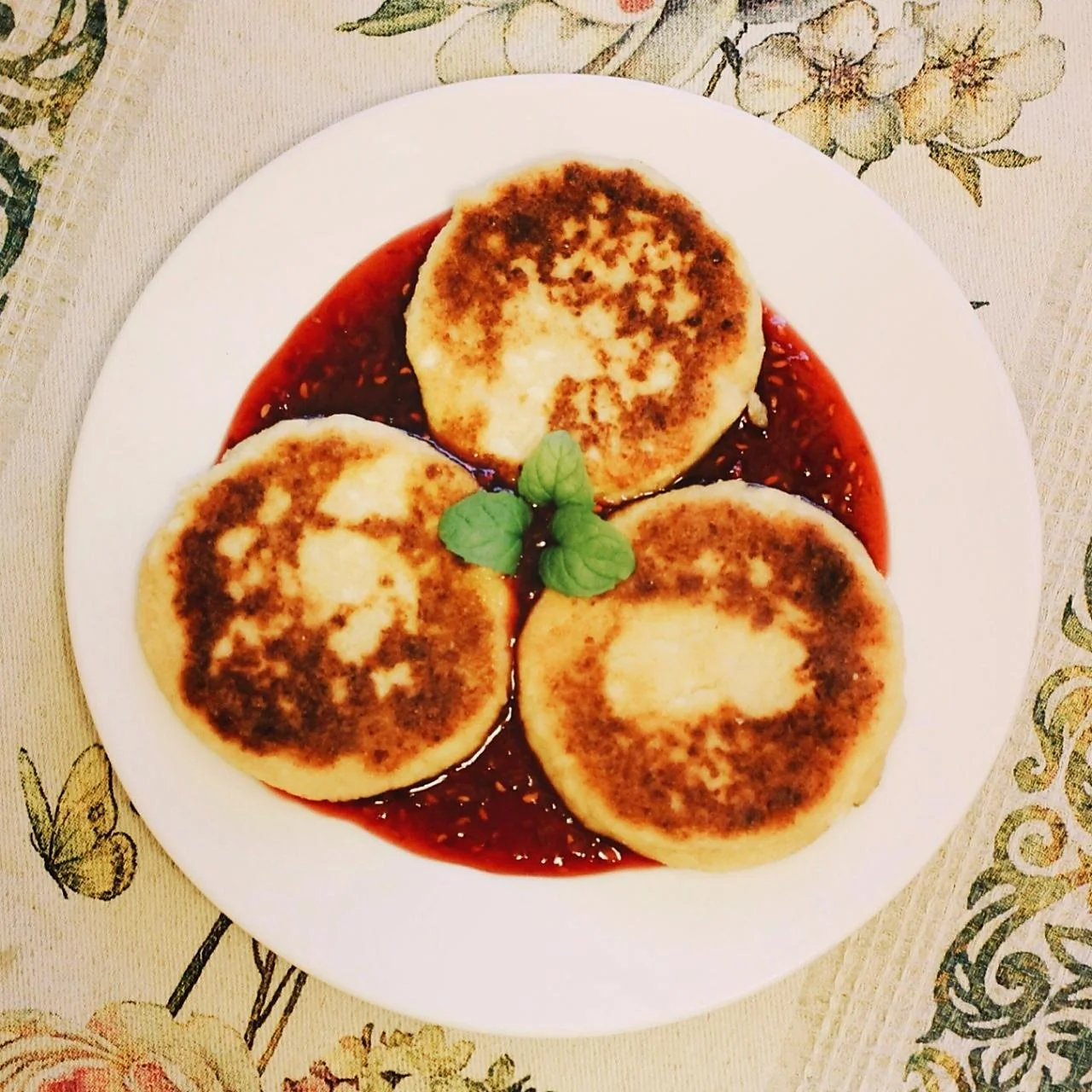 ШАГ 8 Украсить каждую порцию листочками свежей мяты и немедленно подавать на стол,пока сырники еще теплые.