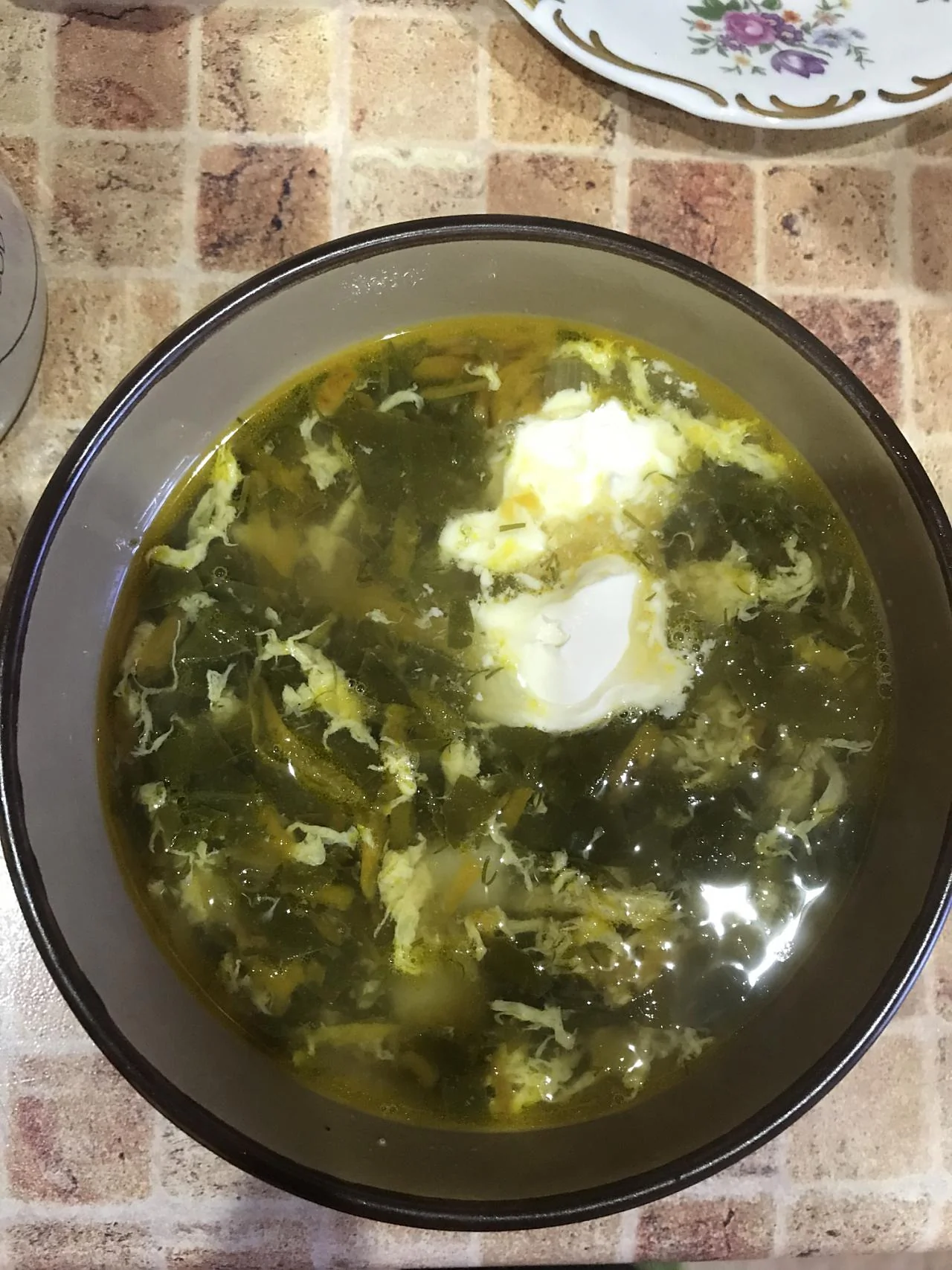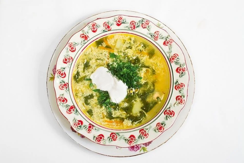 ШАГ 8 При подаче посыпать щавелевый суп свежей зеленью (примерно пару грамм на порцию) и добавить столовую ложку сметаны — хотя можно и больше, это пойдет ему только на пользу.