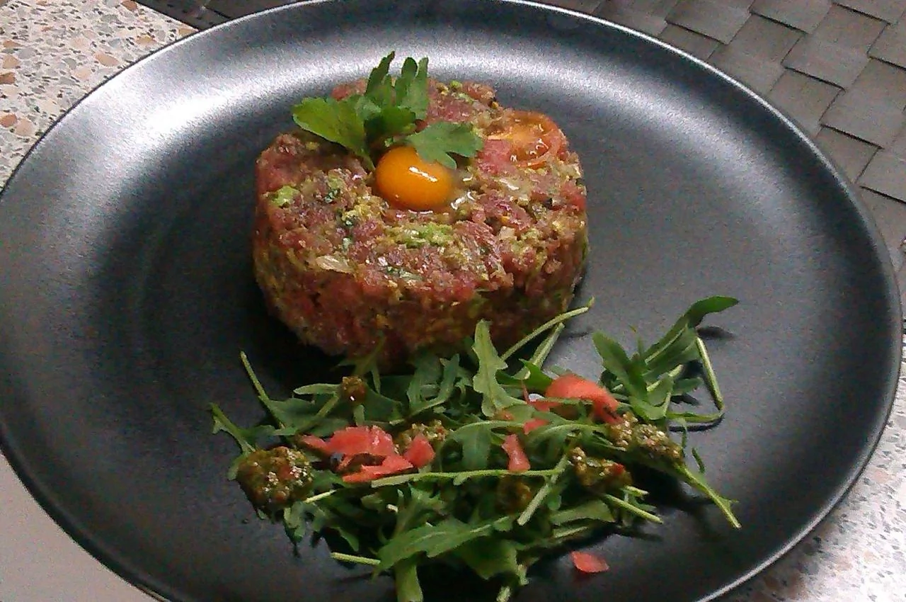 ШАГ 1 Мелко нарезать филе тунца. Нарубить луковицы шалота, каперсы и петрушку.