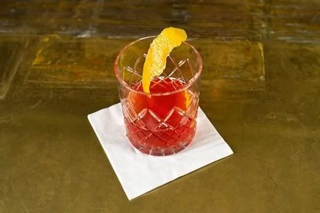 ШАГ 6 Высыпать из отставленного бокала ароматизированный лед. Перелить в тот бокал коктейль, загородив дорогу кубикам льда барным ситечком — чтобы они не попали в готовый сазерак.