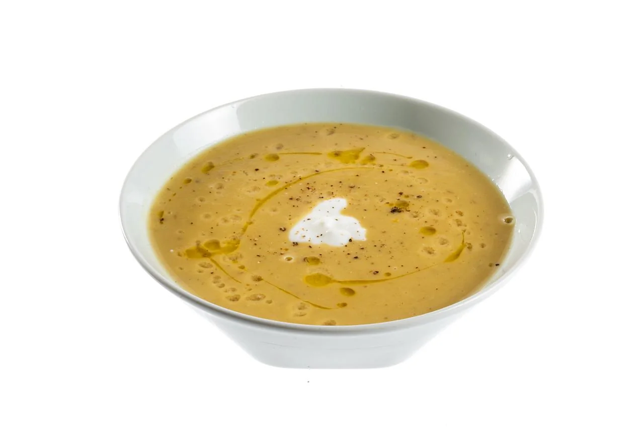 ШАГ 3 Залить бульоном (или водой) и варить около получаса, потом превратить суп в пюре, посолить и поперчить, при подаче заправить йогуртом, или сливками, или лимоном, или всем вместе.