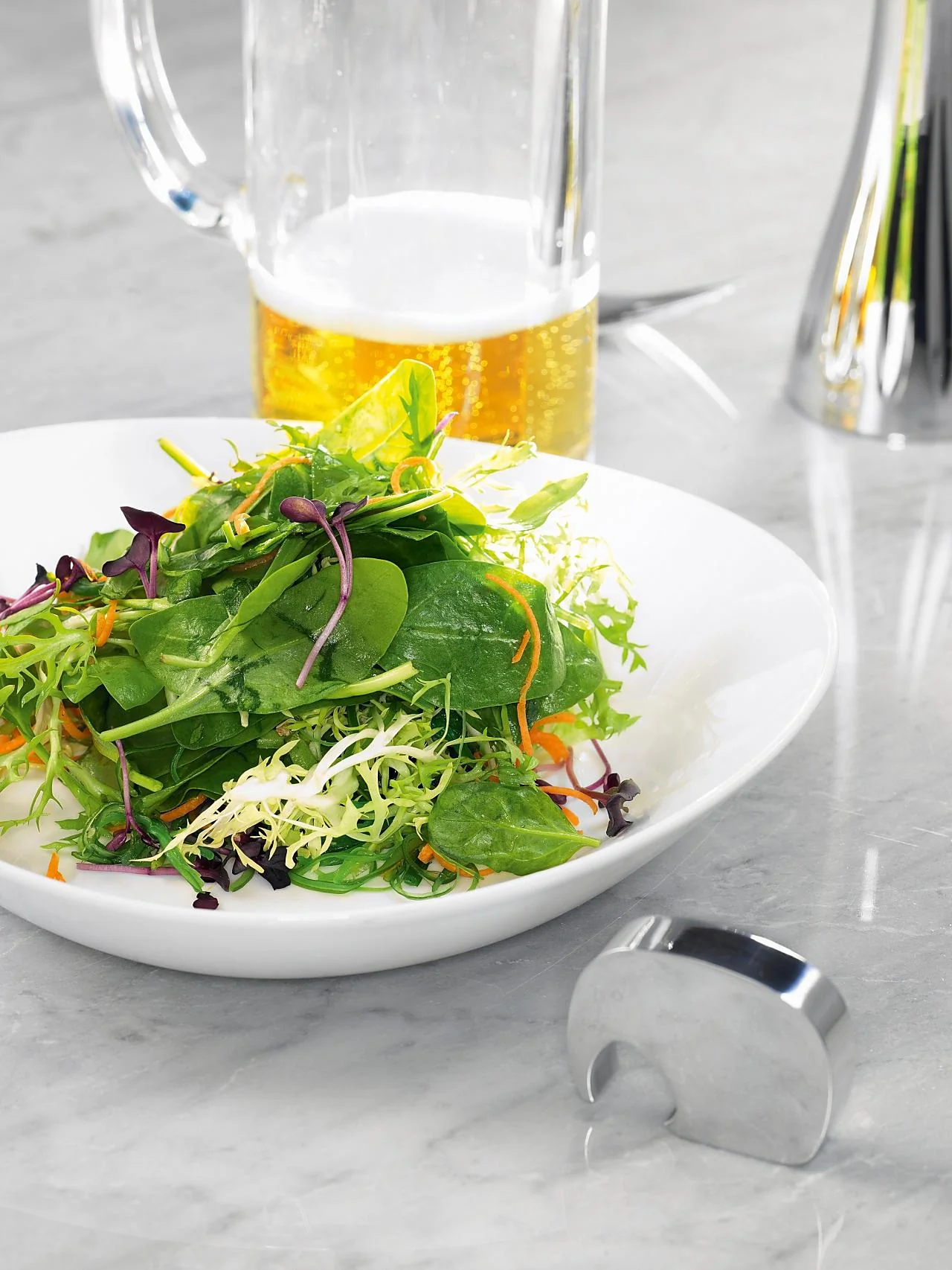 Салат из шпината, щавеля, фризе и водорослей