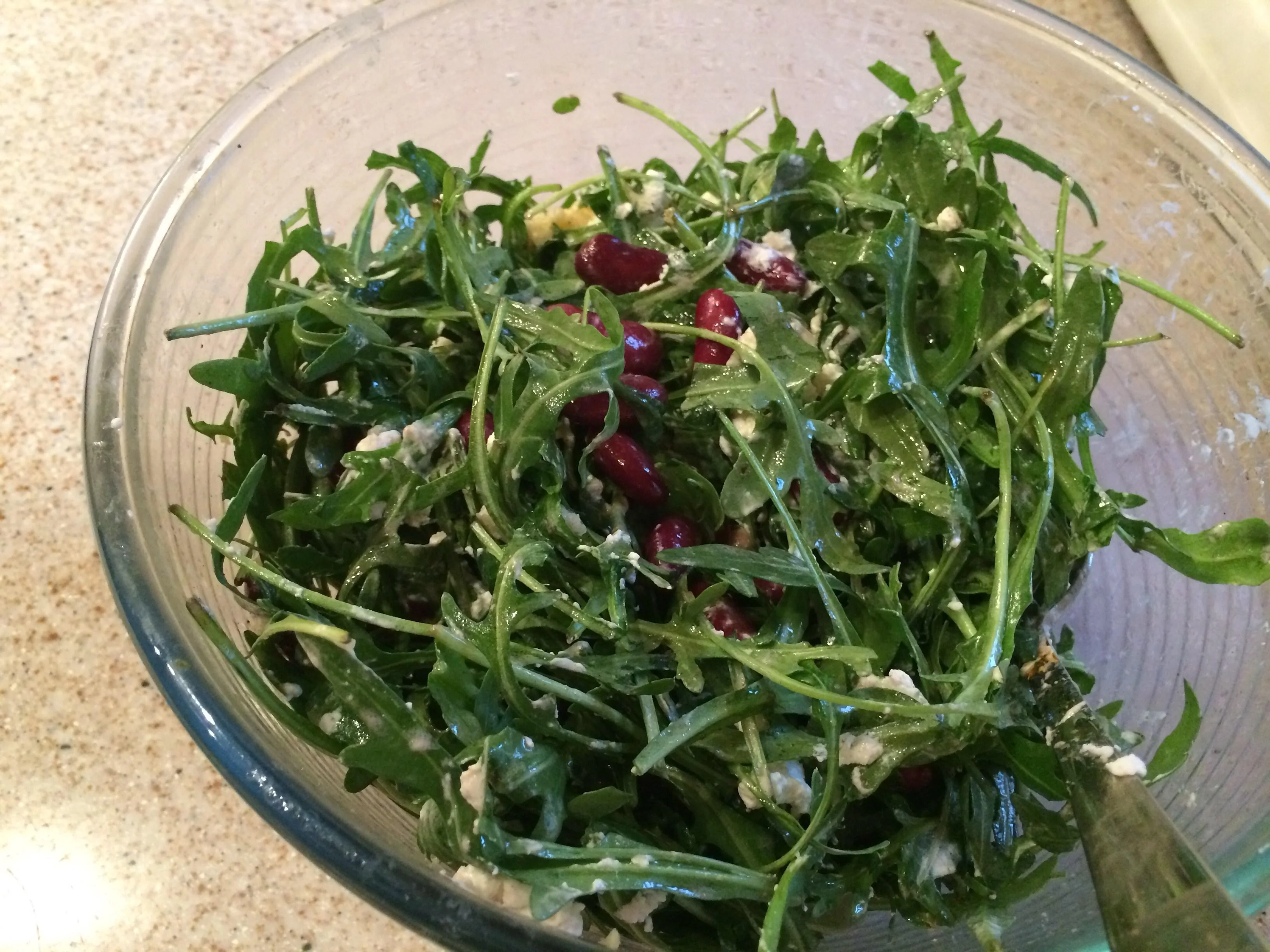ШАГ 2 Готовую фасоль смешать с мелко нарубленным красным луком, зеленью, например, рукколы (которую для удобства поедания нужно предварительно изорвать руками), давленым чесноком, оливковым маслом, лимонным соком и творожным сыром.
