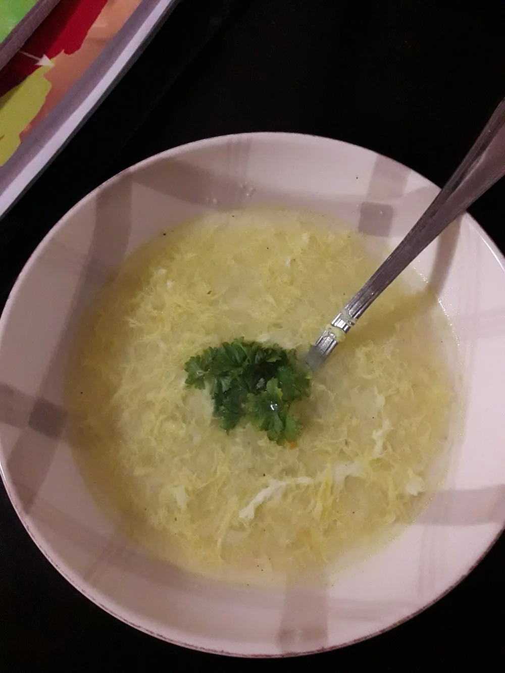 Куриный бульон Длиннозерный рис Яйцо куриное Лимонный сок Крупная соль Перец черный молотый Листья петрушки Пошаговые рецепты Супы Греческая кухня