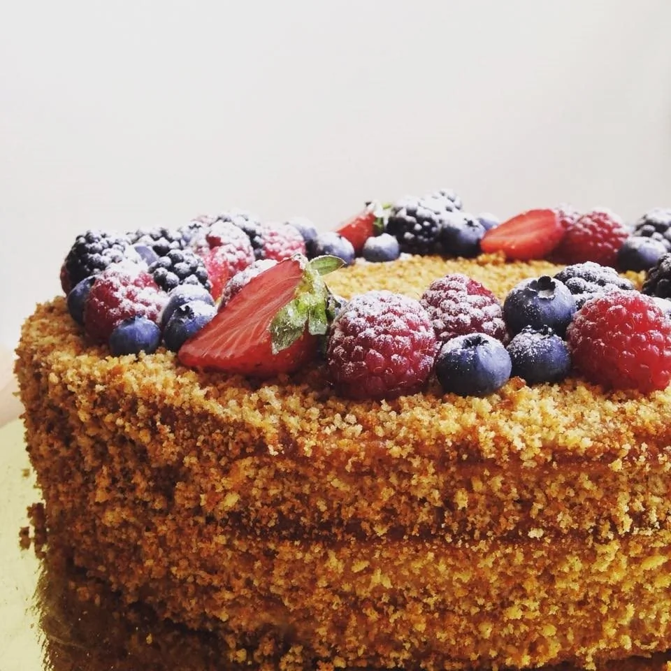 Мед Сливочное масло Яйцо куриное Сахар Пшеничная мука Сода Сметана 20%-ная Сахарная пудра Пошаговые рецепты Выпечка и десерты Русская кухня Торт «Медовик»