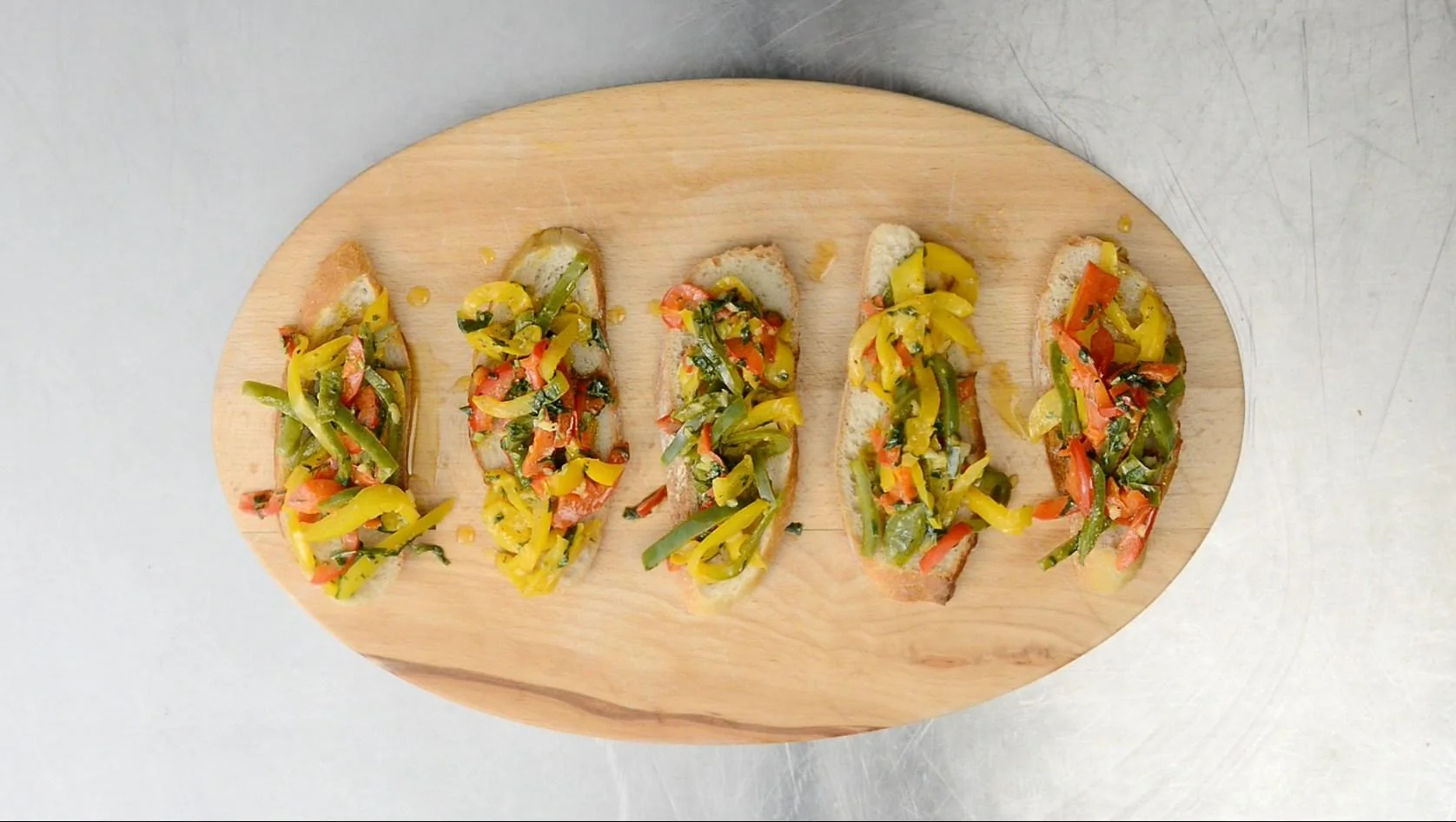Ингредиенты для приготовления Салат из перца по баскски на белых сухарях: