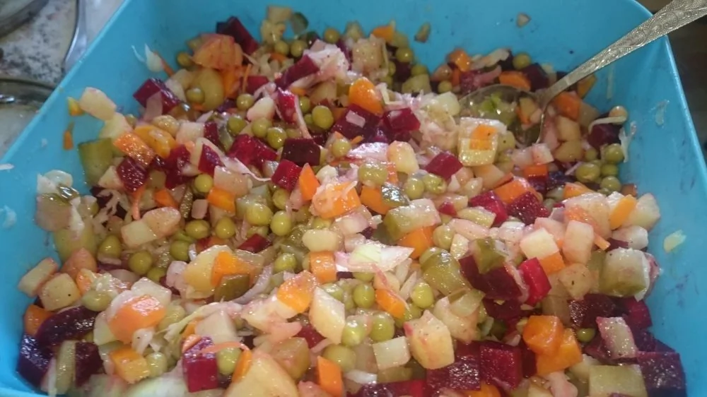 Ингредиенты для приготовления Винегрет из запеченных овощей с квашеной капустой: