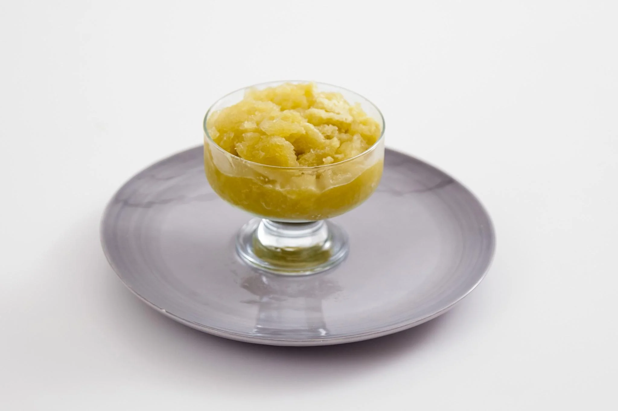 ШАГ 2 Пропустить пюре через мелкое сито, затем перемешать и поставить в морозильник, время от времени доставая оттуда емкость с яблочным пюре и перемешивая его.