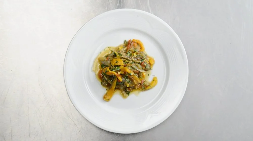 ШАГ 2 Очистить овощи от кожицы, плодоножки, семян. Нарезать тонкой соломкой.