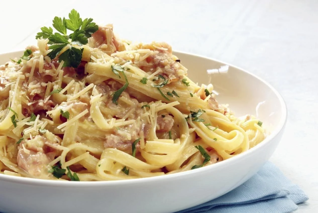 Ингредиенты для приготовления Спагетти карбонара с красным луком: