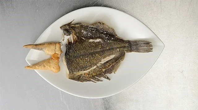 ШАГ 2 Очистить камбалу и обвалять ее в муке. Если у нее есть икра — вынуть. Икру следует жарить отдельно, если жарить её внутри рыбы, она будет такой невкусной, что только выкинуть.