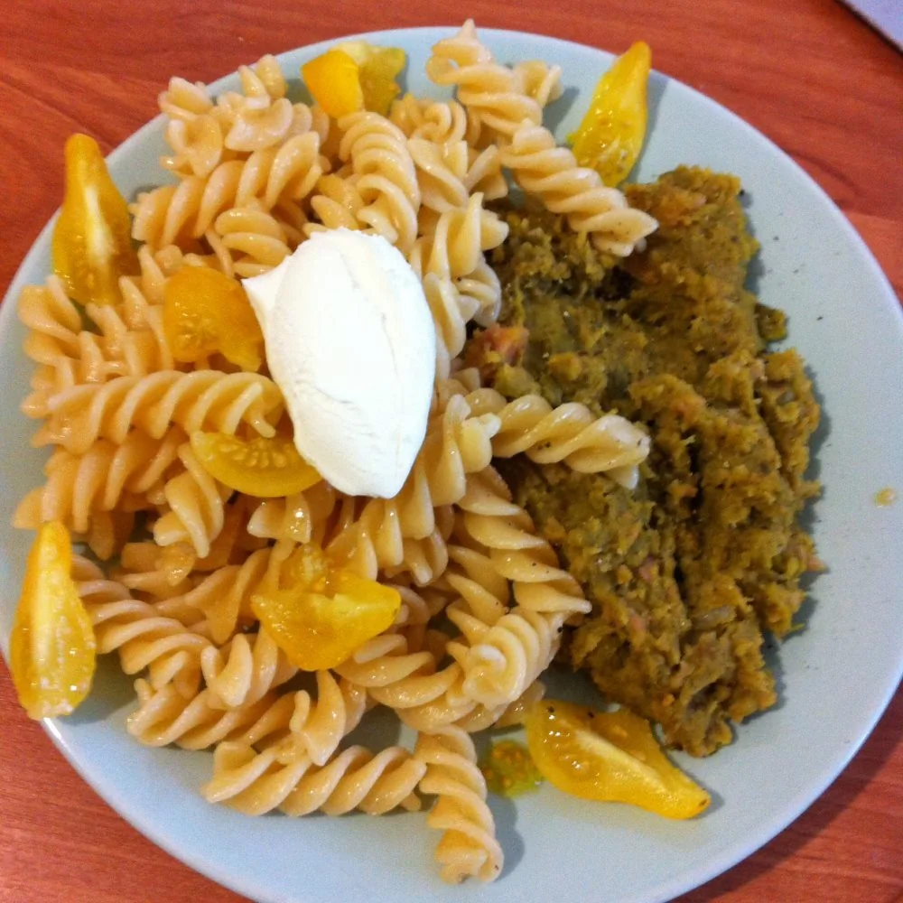 Диталини с соусом из зеленого горошка