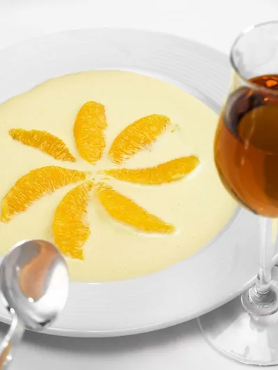 ШАГ 4 Смесь украсить дольками цитрусовых или печеньем савоярди, подавать с десертной ложкой.