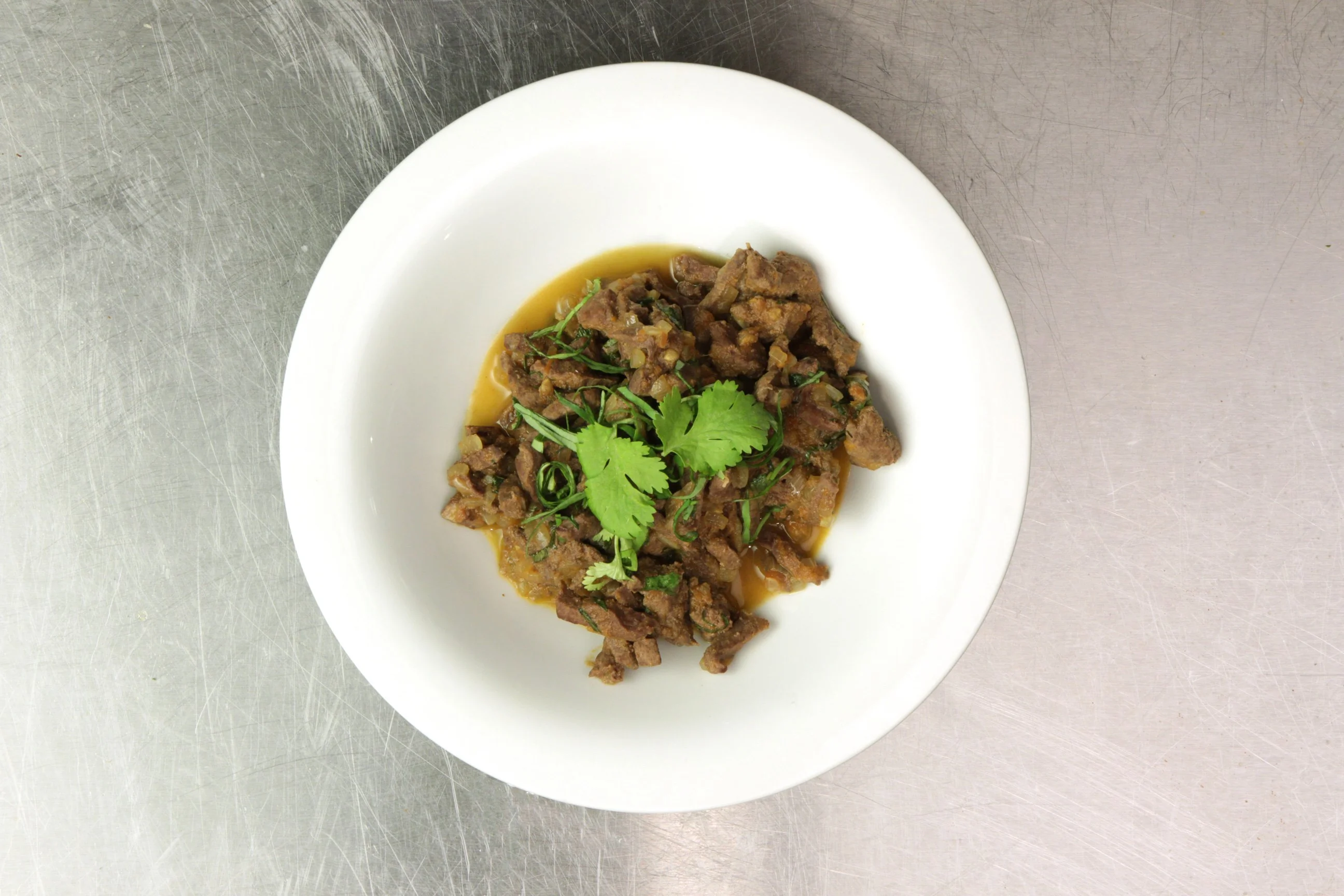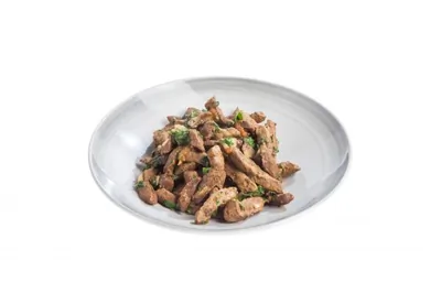 ШАГ 1 Зачистить сердце и печень, тонко нарезать соломкой. Чтобы печень легче резалась, ее нужно слегка подморозить.
