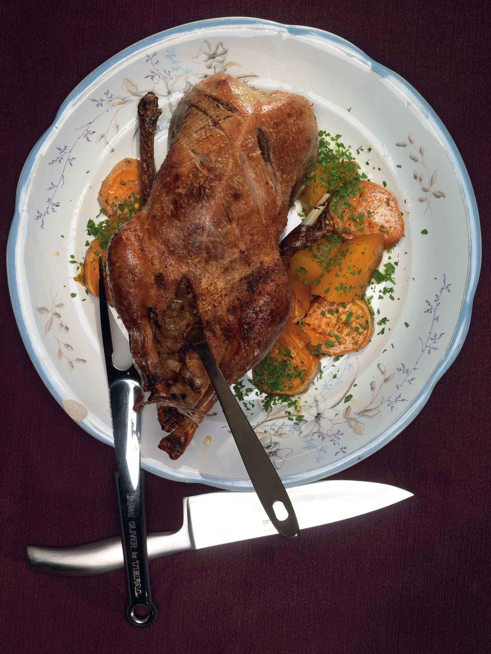 Гусь с яблочным чатни с печеными овощами