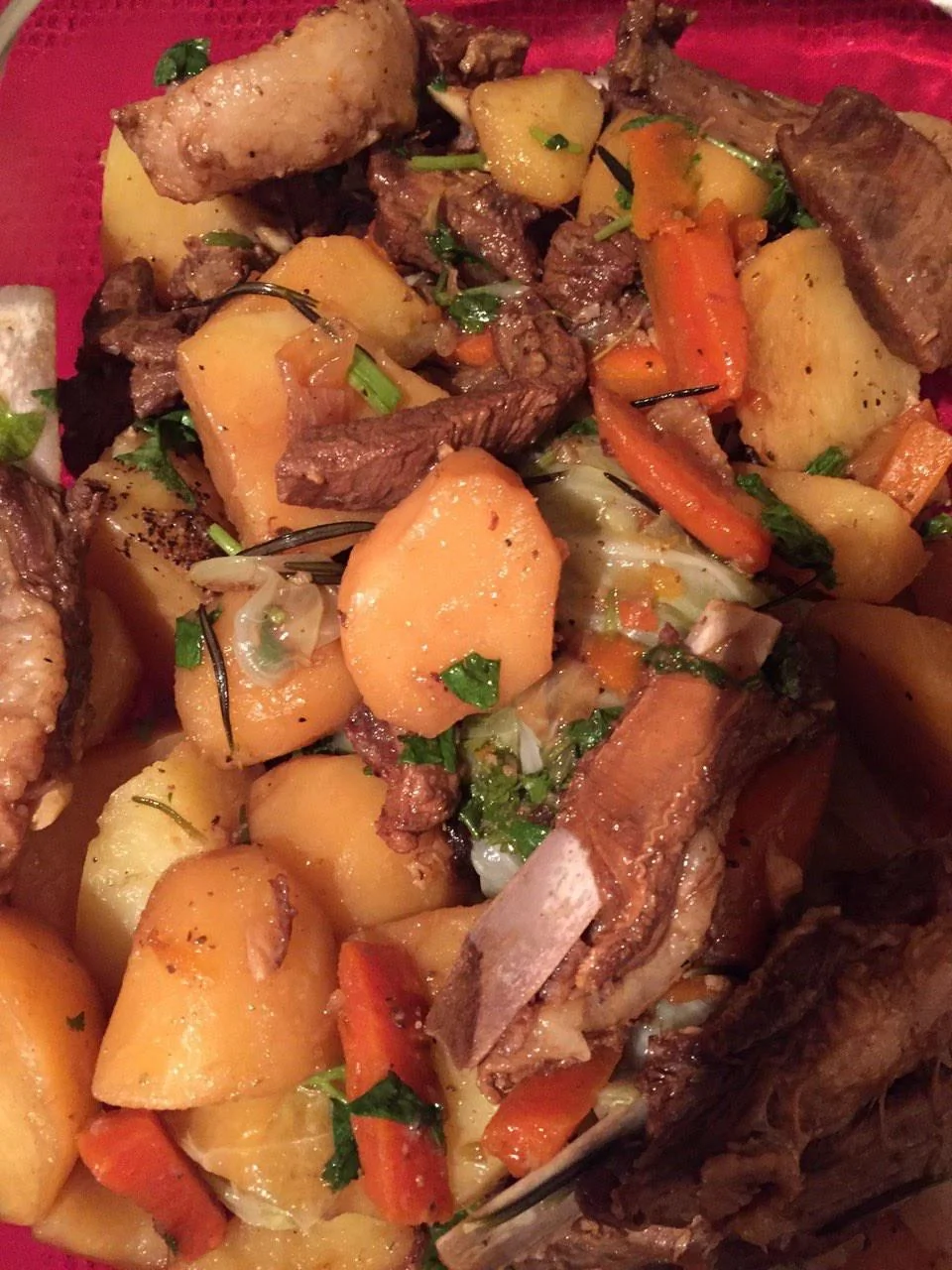 ШАГ 4 Лук нарезать кольцами и выложить поверх ребер вместе с кусочками моркови. Слегка посолить и поперчить. На морковь положить ломтики картофеля. Снова посолить и поперчить. Добавить пару щепоток семян кориандра.