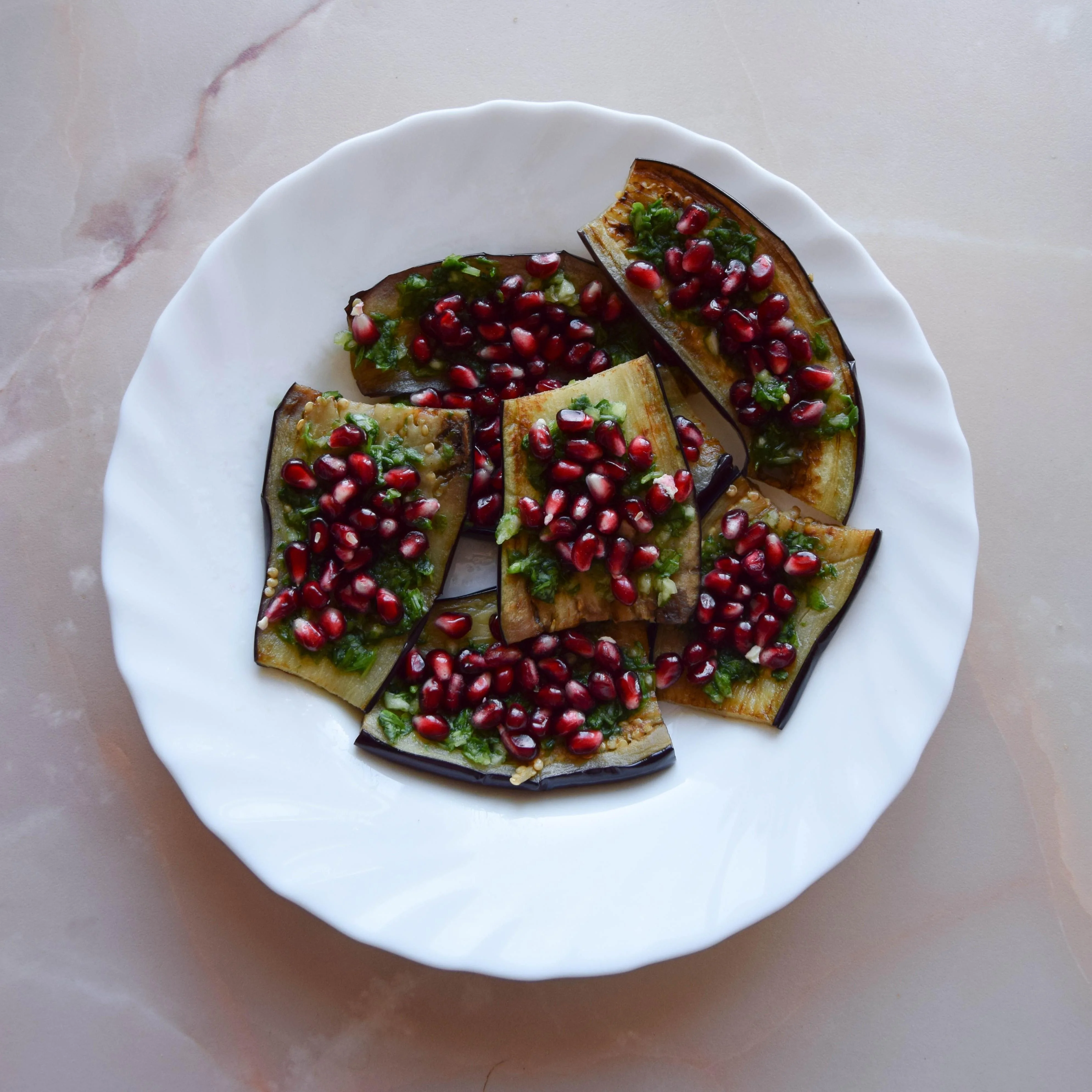Ингредиенты для приготовления Баклажаны жареные с гранатом и зеленью: