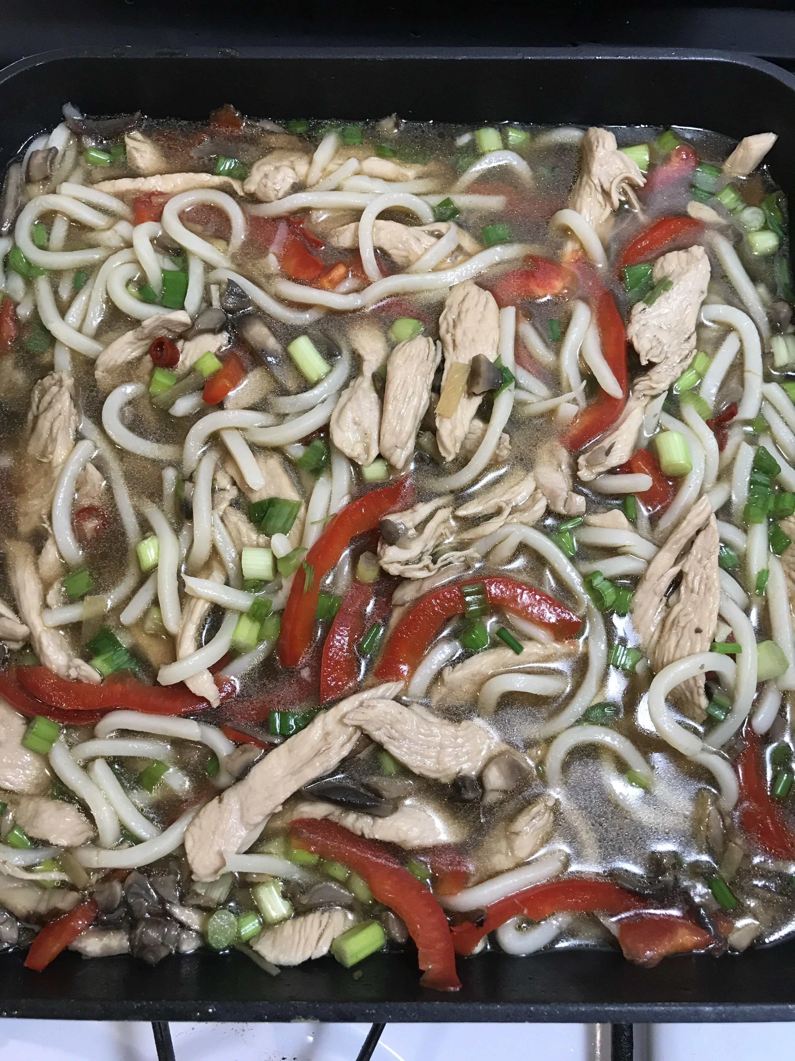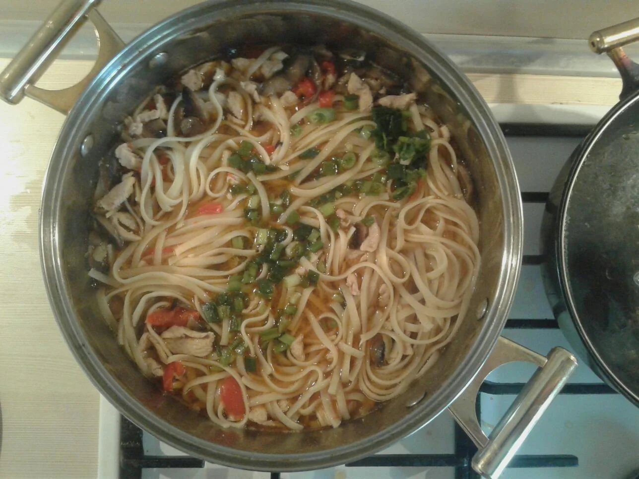 Ингредиенты для приготовления Лапша удон с курицей, вешенками и зеленым луком: