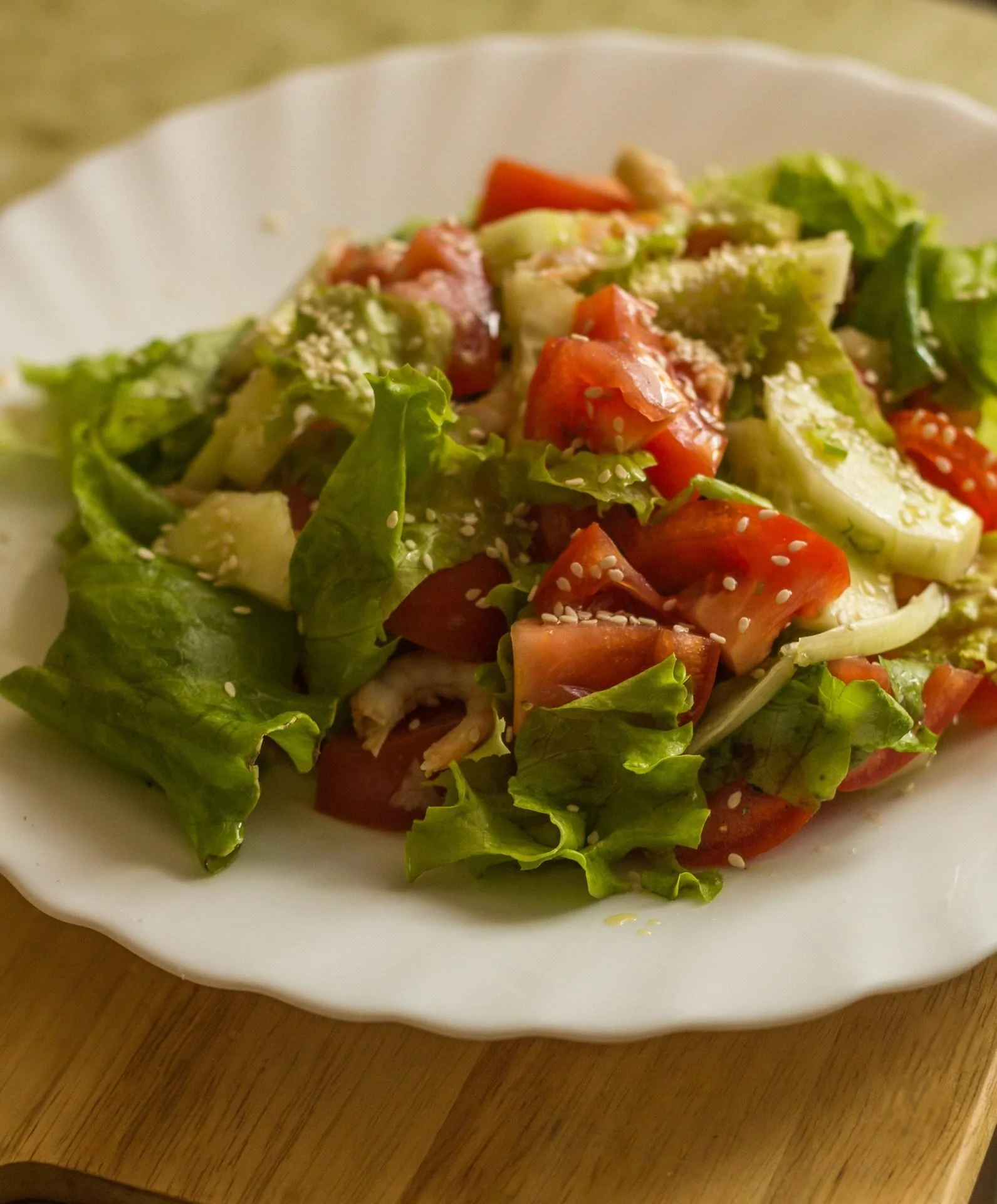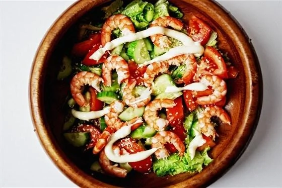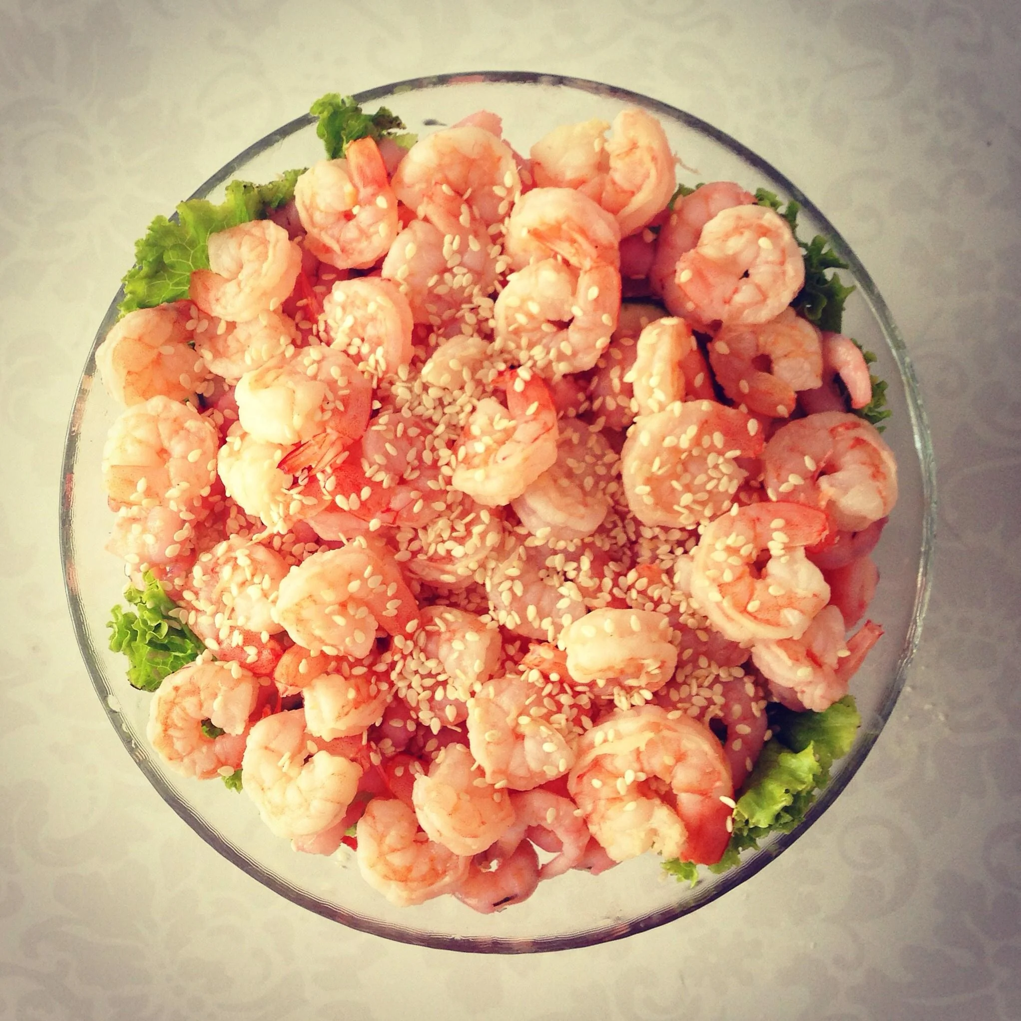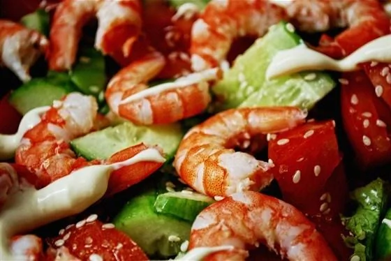 Салат с креветками и кунжутом