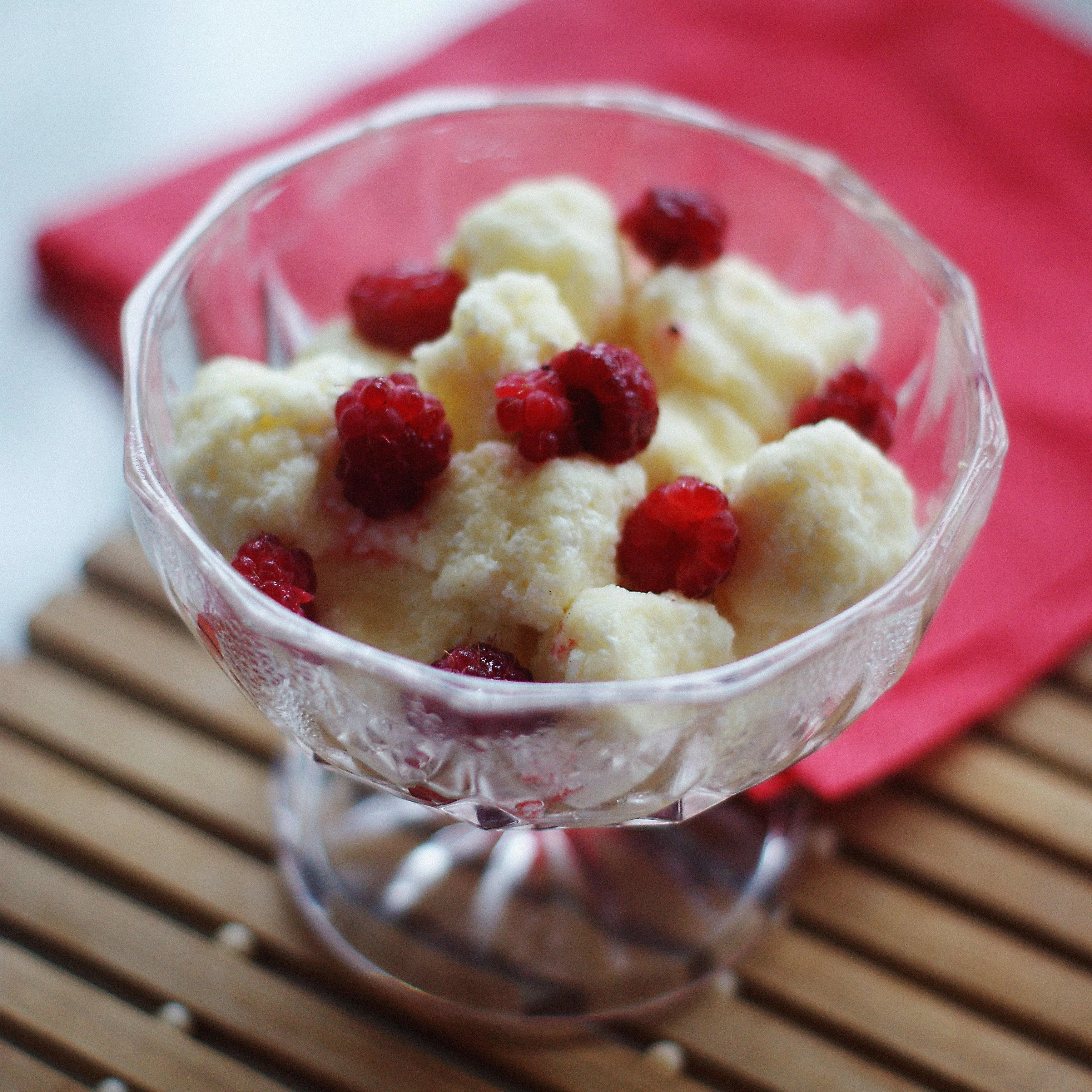 ШАГ 1 В широкую миску выложить творог, добавить яйцо, сахар и муку и вилкой смешать до однородной консистенции. Если масса получилась слишком липкой, добавить еще муки, но не больше половины столовой ложки.