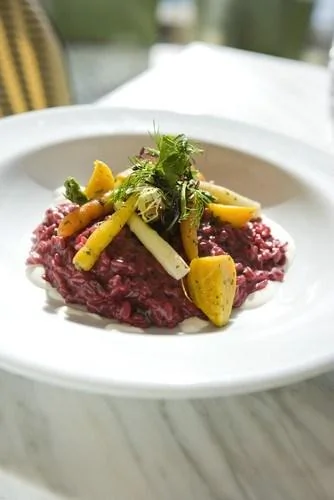 ШАГ 8 Выложить перловку на порционные тарелки, украсить желтой свеклой и сельдереем, зеленью.