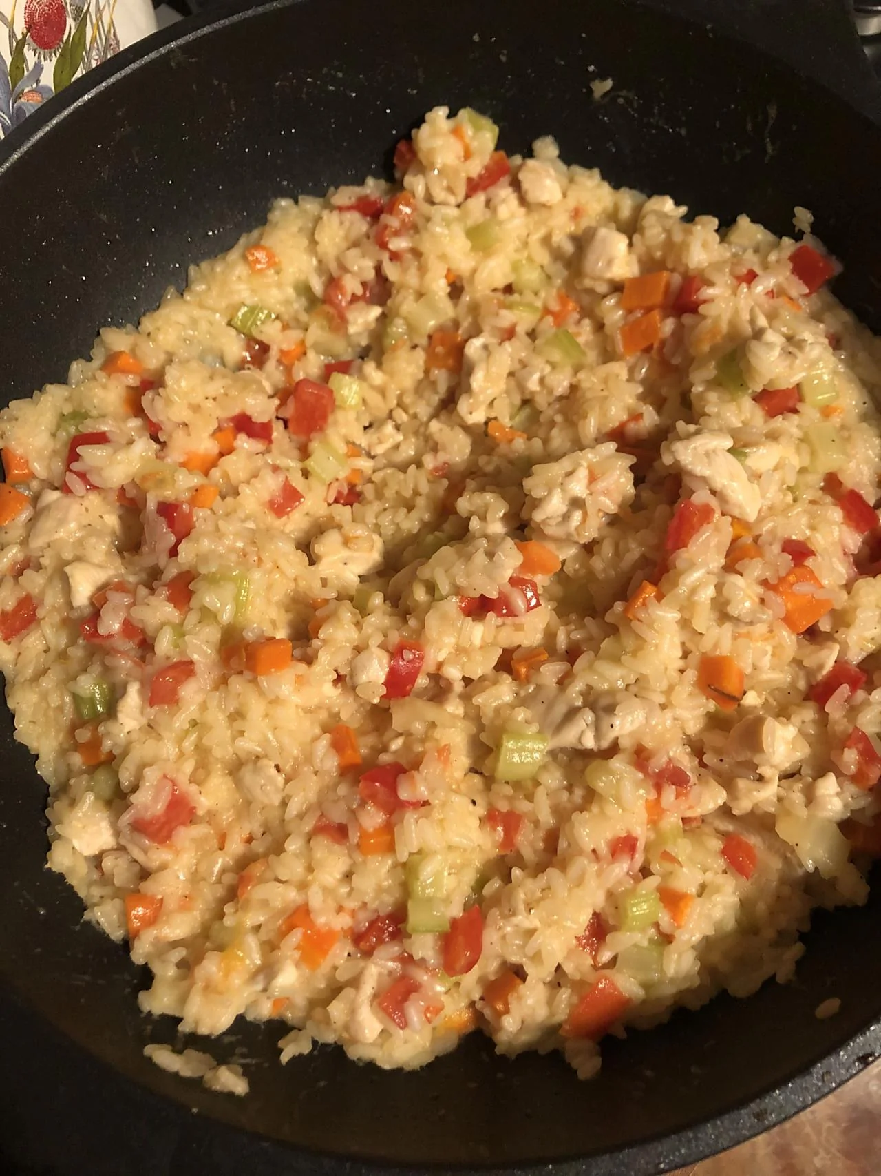 Ингредиенты для приготовления Ризотто с курицей, овощами и пармезаном: