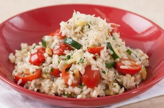 Летнее ризотто с помидорами черри, цукини и кедровыми орешками