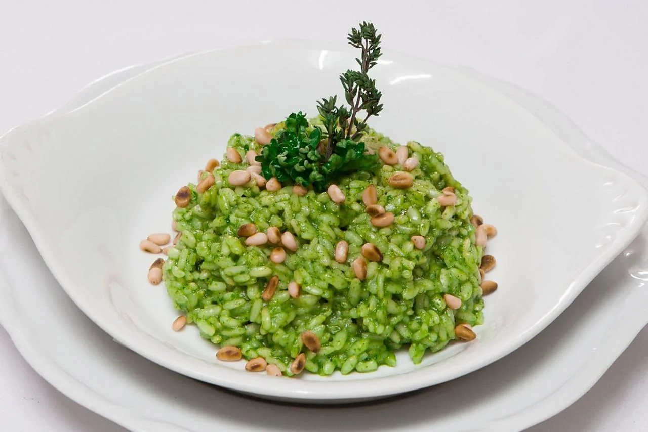 Ингредиенты для приготовления Ризотто с соусом песто и кедровыми орешками: