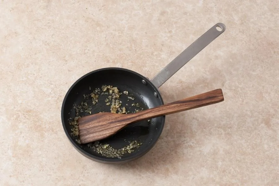 ШАГ 1 Нарежьте лук-шалот и чеснок мелким кубиком и обжарьте на оливковом масле 2–3 минуты до прозрачного состояния лука.