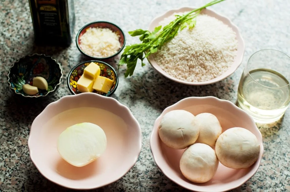 Ингредиенты для приготовления Ризотто в шампиньонами: