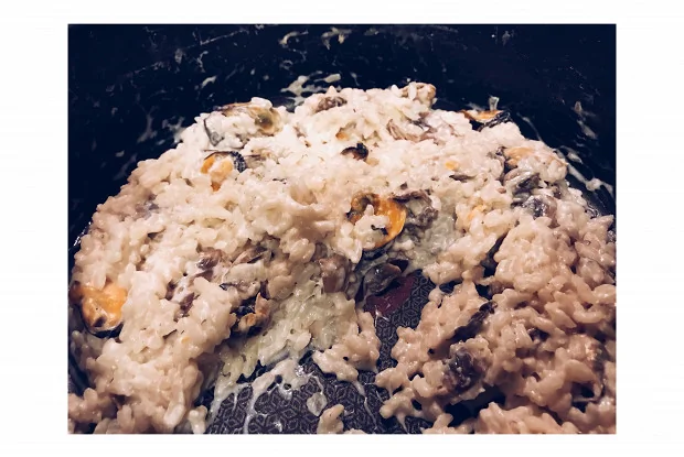 Ризотто с мидиями и шампиньонами в сливочном соусе