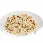 ШАГ 3 Добавить в сотейник рис, щепотку соли и обжарить в течение 2–3 минут. Влить вино, выпарить в течение пары минут, помешивая. Влить половник горячего куриного бульона, помешивать, пока бульон не выпарится, снова влить половник бульона и продолжать таким образом готовить, пока рис не дойдет до состояния аль денте. Это займет около 20 минут.