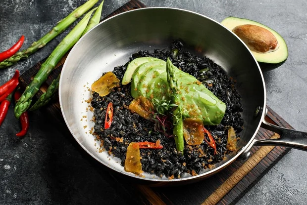ШАГ 4 Добавить чернила каракатицы, сливочное масло и затягивать ризотто до загустения.