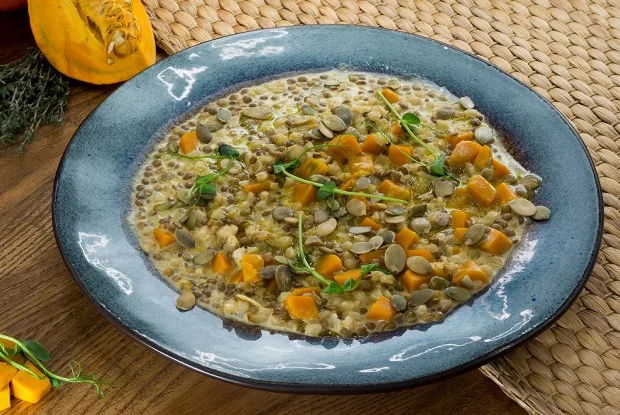 Ингредиенты для приготовления Ризотто из дзавара и чечевицы с тыквой: