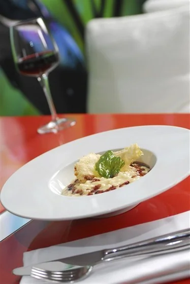 ШАГ 6 Пармезан натрите на мелкой терке. Пармскую ветчину нарежьте небольшими кусочками и слегка обжарьте, а затем добавьте в ризотто и перемешайте. Разложите ризотто по тарелкам, посыпьте сверху тертым пармезаном.