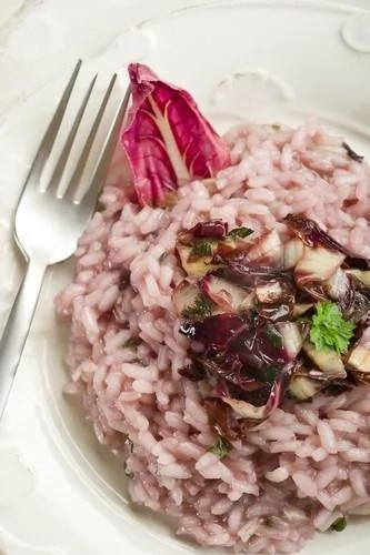 Ингредиенты для приготовления Розовое ризотто с радиккьо и красным вином: