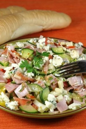 Салат из творога с ветчиной и овощами