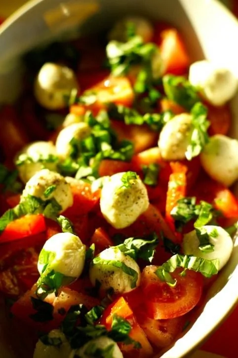 Ингредиенты для приготовления Капрезе с шариками моцареллы и соусом песто: