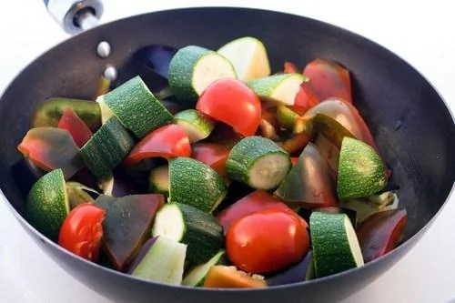 Салат из запеченных цукини и помидоров с миндалем