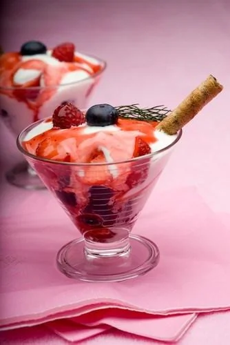 ШАГ 3 Взбейте охлажденную сметану до образования густой массы. Добавьте сахарную пудру и продолжайте взбивать еще несколько минут. Заправьте салат.