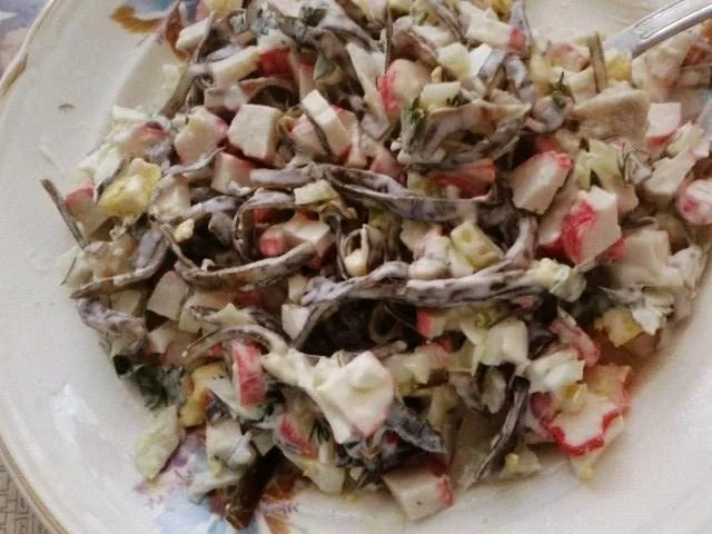 Салат из морской капусты с крабовыми палочками