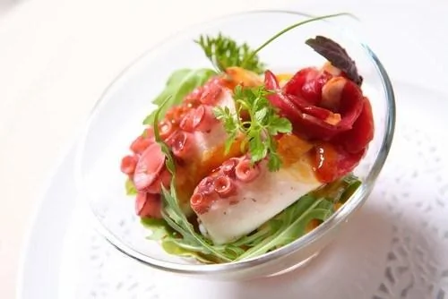 Ингредиенты для приготовления Салат из осьминога на гриле, рукколы и черри: