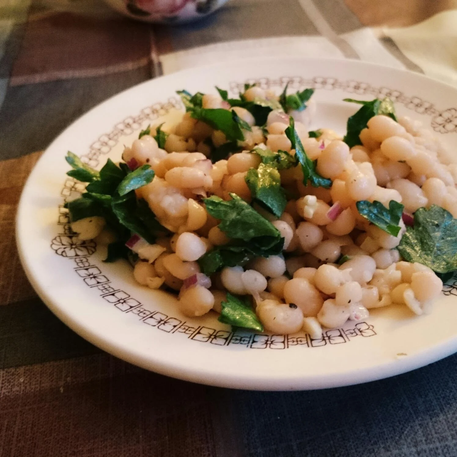 ШАГ 3 Переложите в миску и, пока фасоль теплая, добавьте оливковое масло, уксус, измельченный чеснок, мелко нарезанный лук и петрушку. Посолите и поперчите. Хорошо перемешайте и подавайте комнатной температуры.