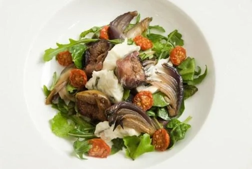 Салат с вяленым помидорами, инжиром и карамелизованным луком