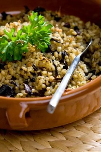 Ингредиенты для приготовления Салат из ячменя, грибов, феты и грецких орехов: