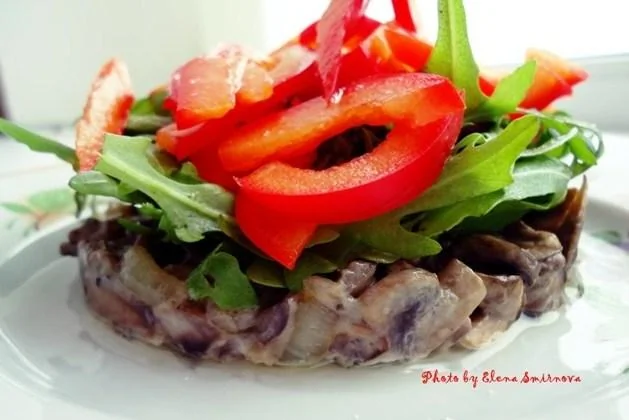 ШАГ 5 Выложите грибы на рукколу и подавайте.